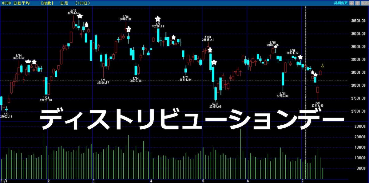 ディストリビューションデーとは、トレンド転換を指すもの(条件あり)となります。
