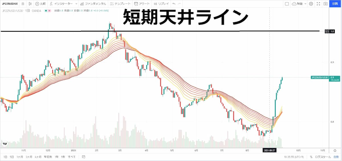 今は0.9なので、まだまだ日経平均とNYダウの差はある状態です。
