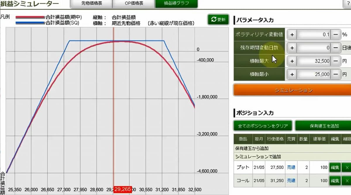 そして到達しない日経平均のプットオプション、コールオプションの端っこを売ります。