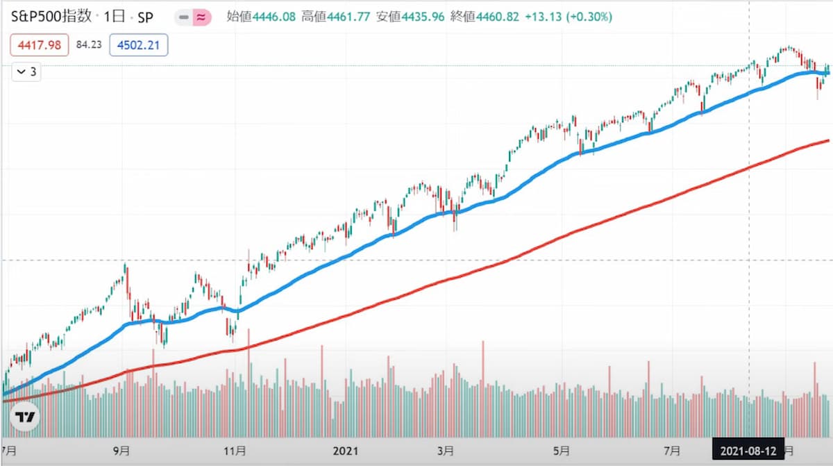 一方、米国市場の様子を見てみましょう。図はS&P500指数のチャートです。