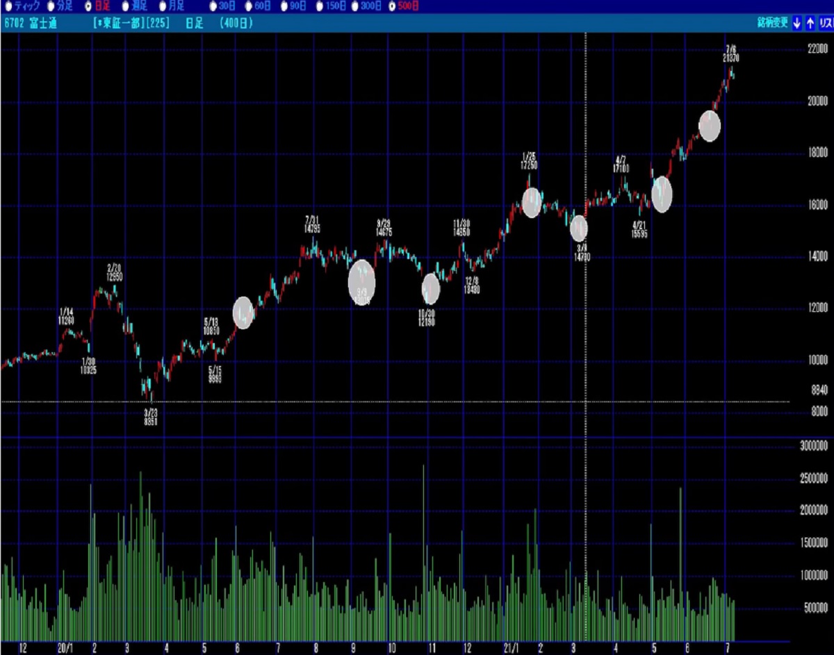 直近7回は押し目となっており、恐らく8回目も押し目になるかと思います。
