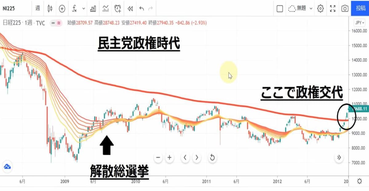 日経平均はボラもなく、長い間下落トレンドでした。