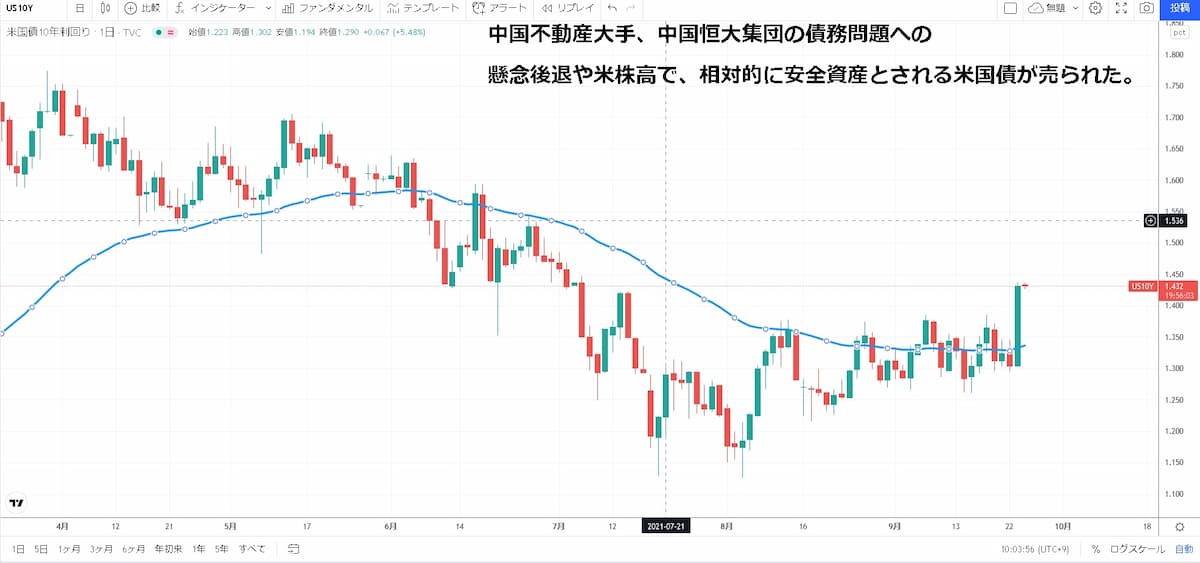 懸念後退や米国株高で相対的に安全資産とされる米国債が売られたことが分かります。