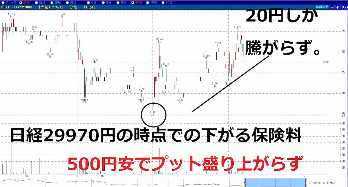 図はプットオプション12月限27,000円のチャートです。