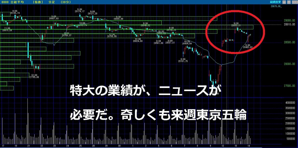 図は日経平均株価の30分足のチャートです。
