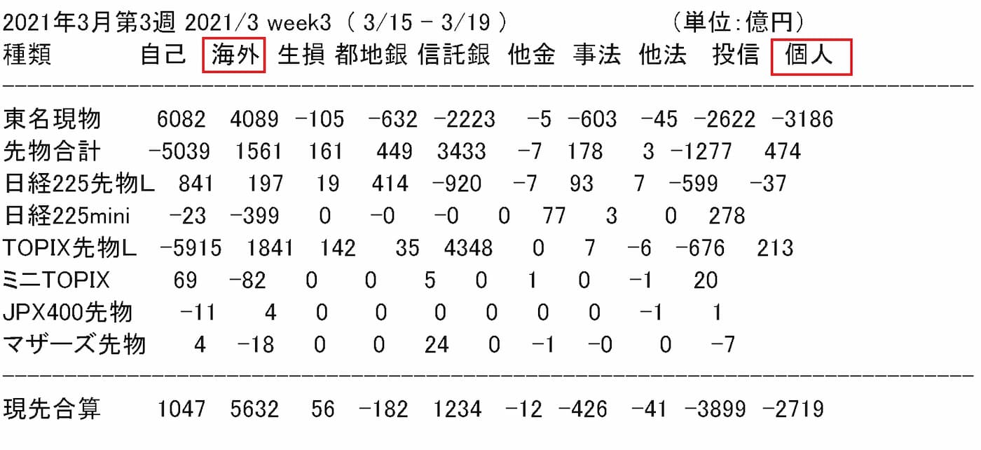 25日に発表された投資主体別売買動向を見ると