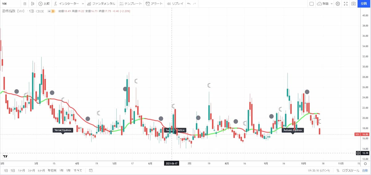 VIXは20ポイントを割り込んでおり、16ポイント台となっています。