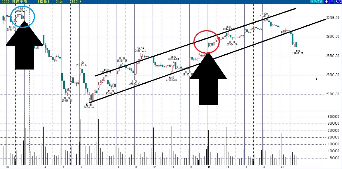 21日の日経平均株価は28,708円と大幅下落となりました。