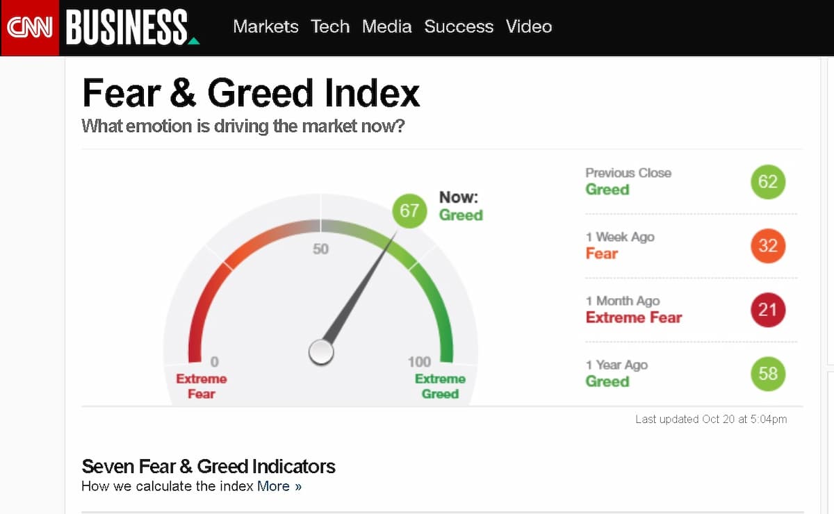 図はもう一つの恐怖指数といわれている「Fear & Greed Index」です。