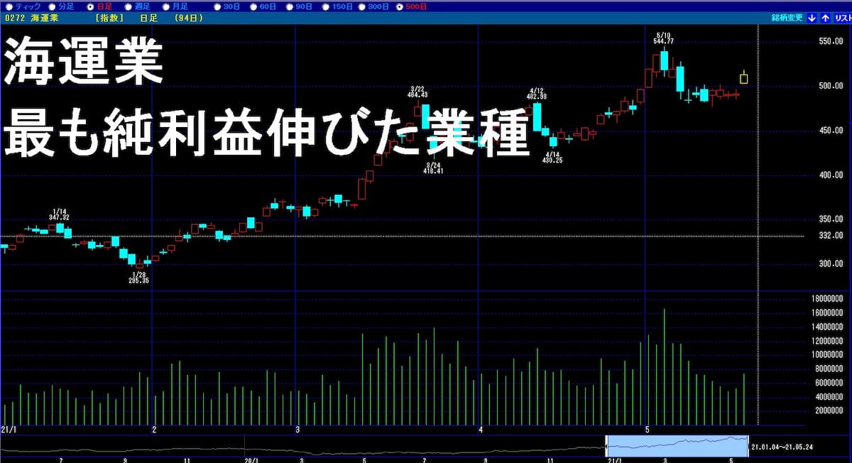 海運業は日本株の業種別の中で最も利益が伸びた業種です。