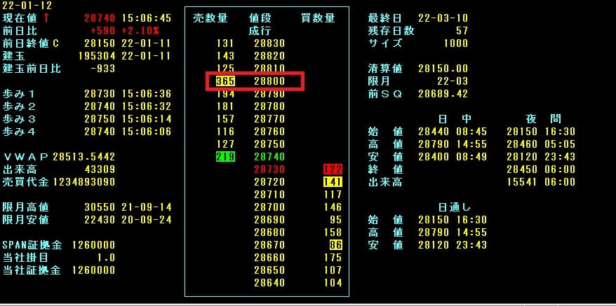 28,800円の売りの枚数が約300枚と他に比べて多いことが分かります。