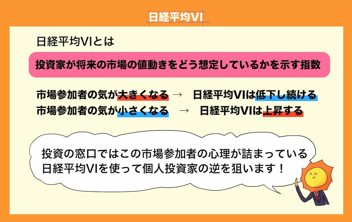 日経平均VIとは投資家が将来の市場の値動きをどう想定しているかを示す指数です。