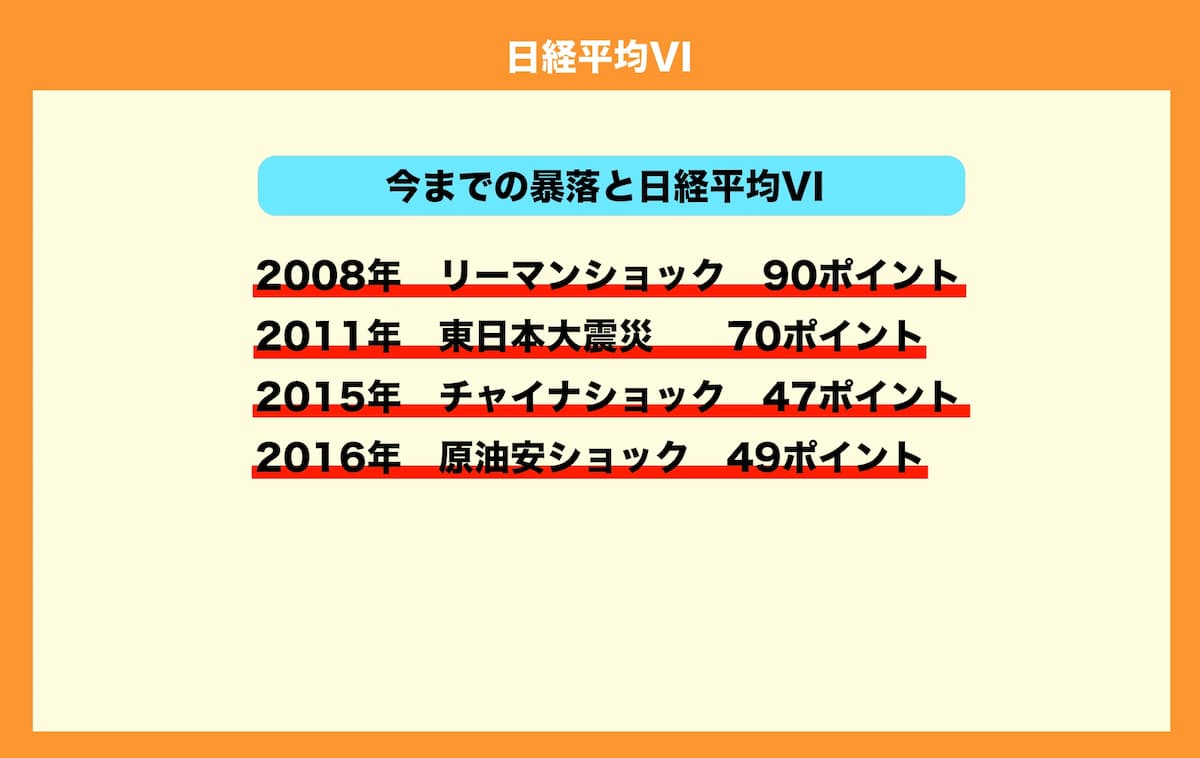 今までの暴落と日経平均VIを見ていくと、図のようになります。
