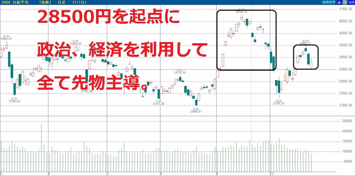 そして総裁選後はセルザファクトの流れで一斉に先物が売られました。