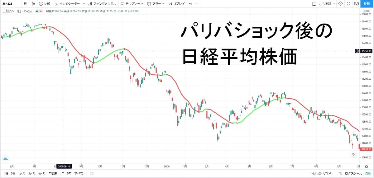 パリバショック後の日経平均株価をチャートで見てみましょう。
