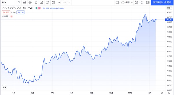 例えば10月以降はドルインデックスのチャートもドル円のチャートも上昇しています。