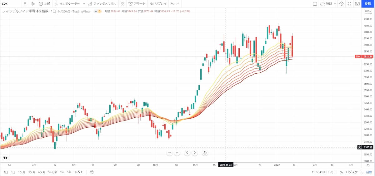 図はフィラデルフィア半導体株指数(SOX指数)のチャートです。