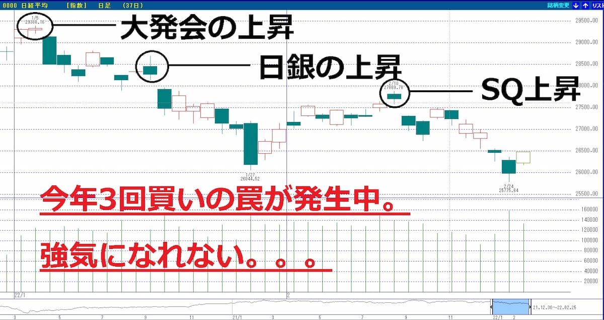 今年3回も買いの罠が発生しており、いずれも日経平均が楽観に傾いて、