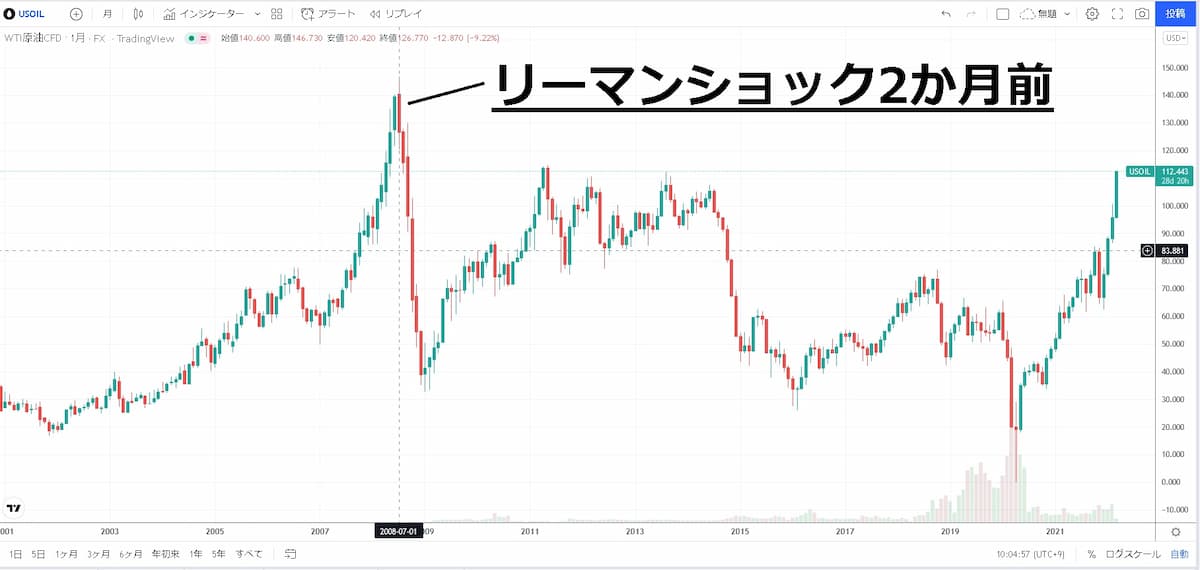 リーマンショック時も2カ月前に原油のCFDが月足で大きな天井をつけて、
