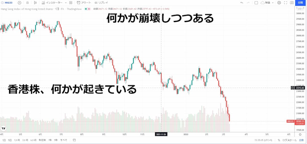 香港ハンセン指数は大きく暴落しましたが、