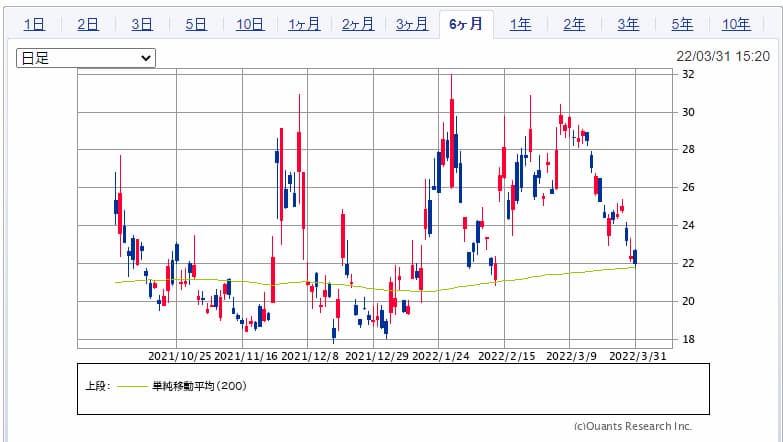 31日が決算発表でしたが2.2%下落となり、年初来安値を更新しました。