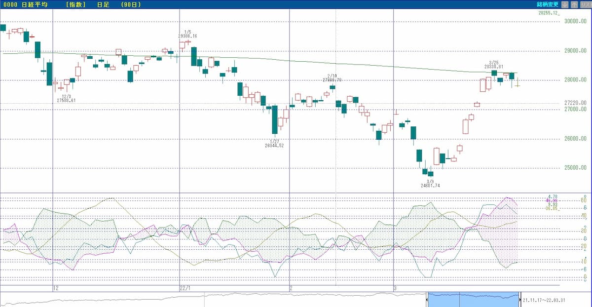 31日の日経平均株価は27,821円と続落となりました。