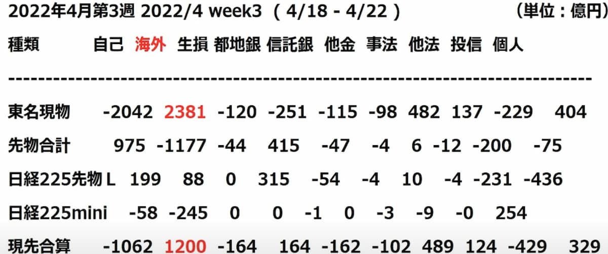 しっかりとした現物株の買いが4週連続で約1兆円程入っており、