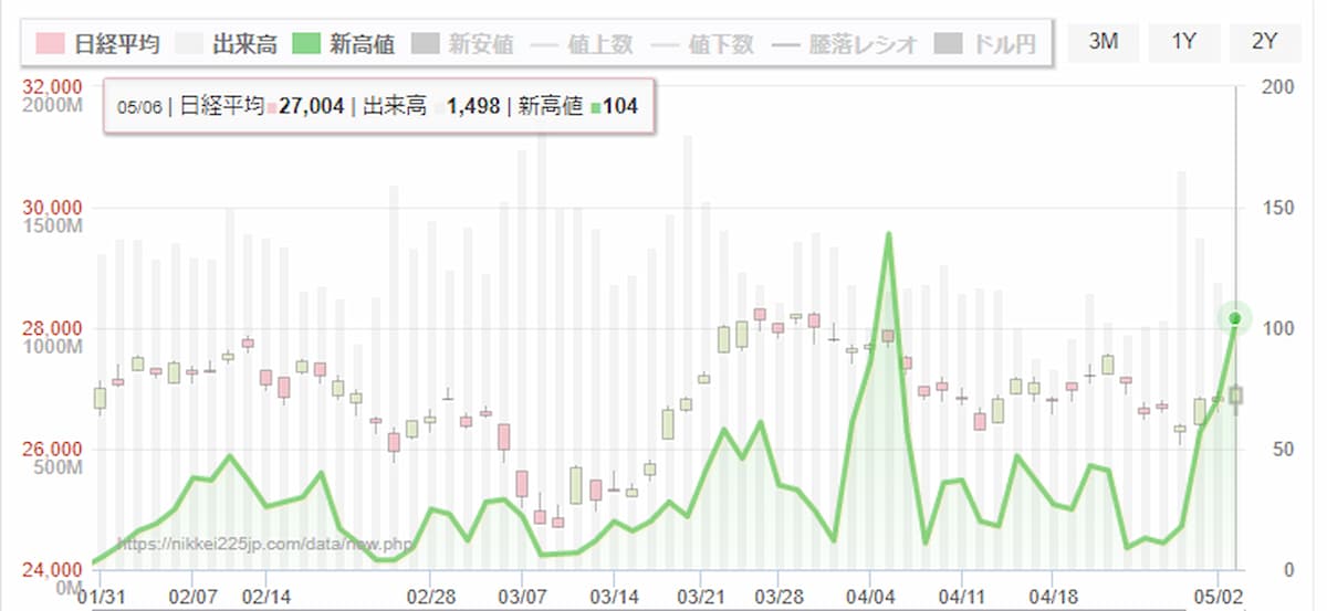 しかし日本株を見ると新高値銘柄数は増加していました。