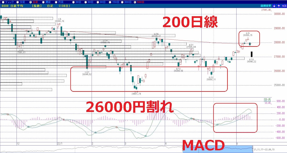 そうなると次の下値目処となると、26,000円のラインだと思います。