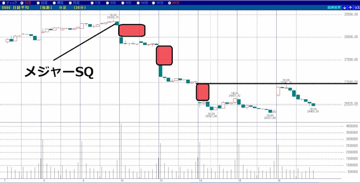 メジャーSQ通過後に3つ大きく窓を開けています。