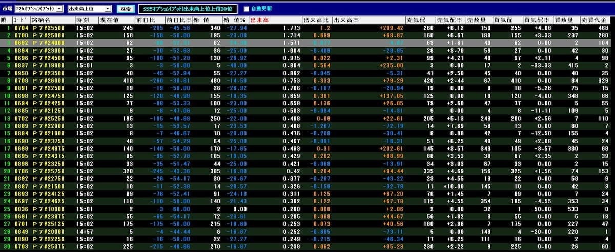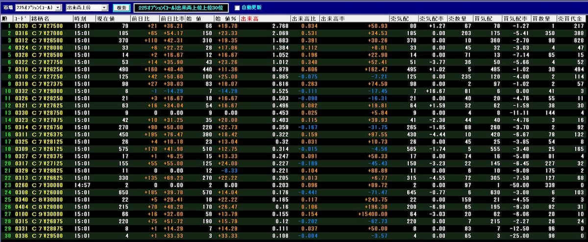 そして出来高もそれなりにあり、コールオプションの上げの波が入っていることが分かります。
