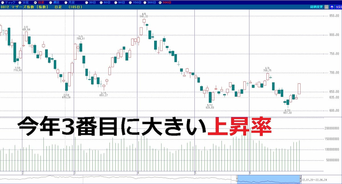 そしてマザーズ指数でも今年3番目に大きい上昇率となっており、