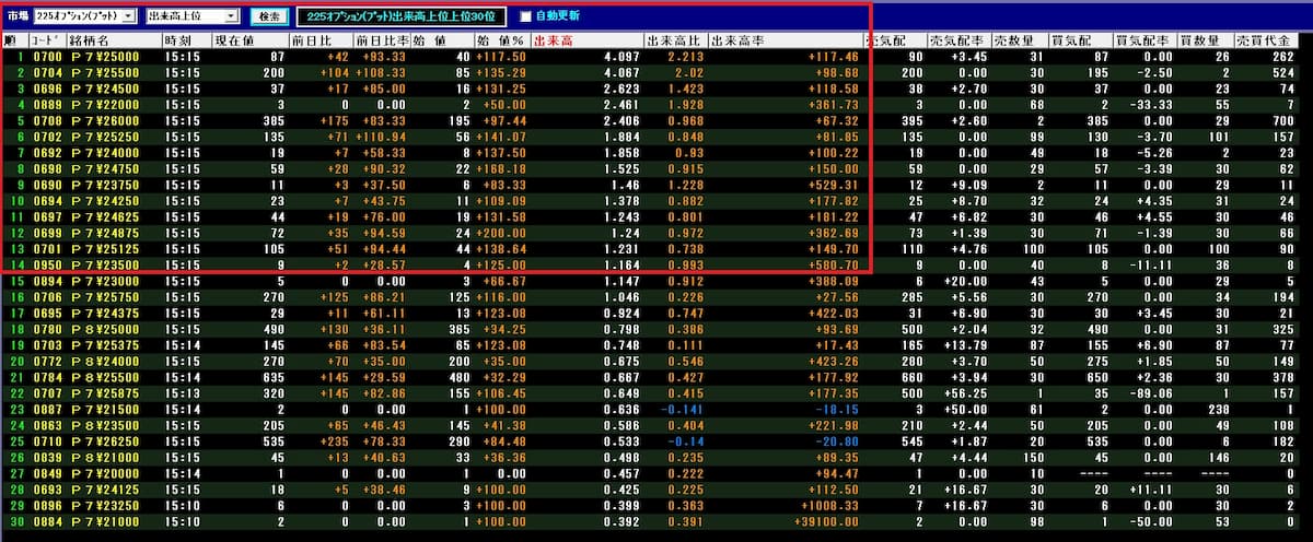 そしてこの4つのプットオプションの出来高だけで売買枚数が10,000枚を超えています。