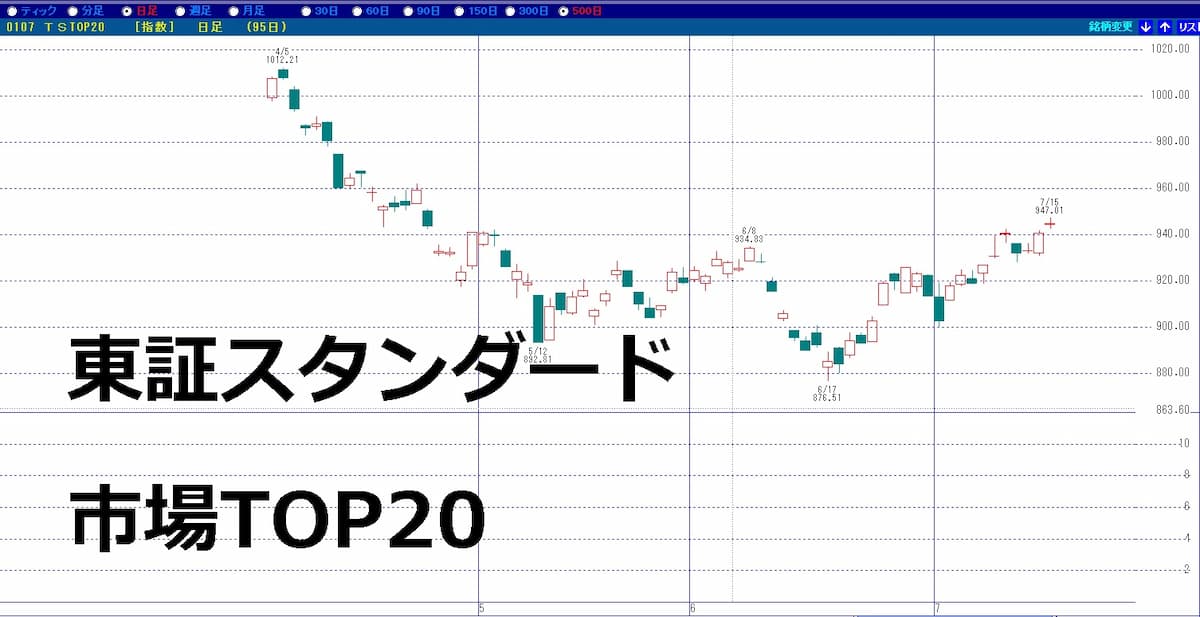 日経平均株価は上がってはいませんが、図の東証スタンダード市場TOP20のチャートを見ると、