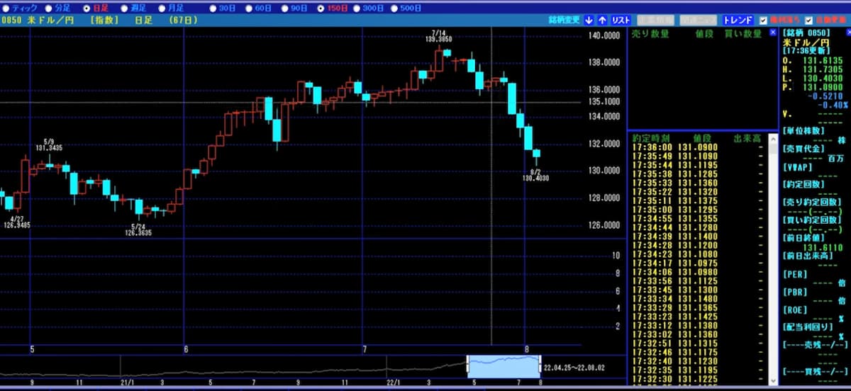 いち早く敏感に反応を示していたドル円ですが、ドル円は131.6円となりました。