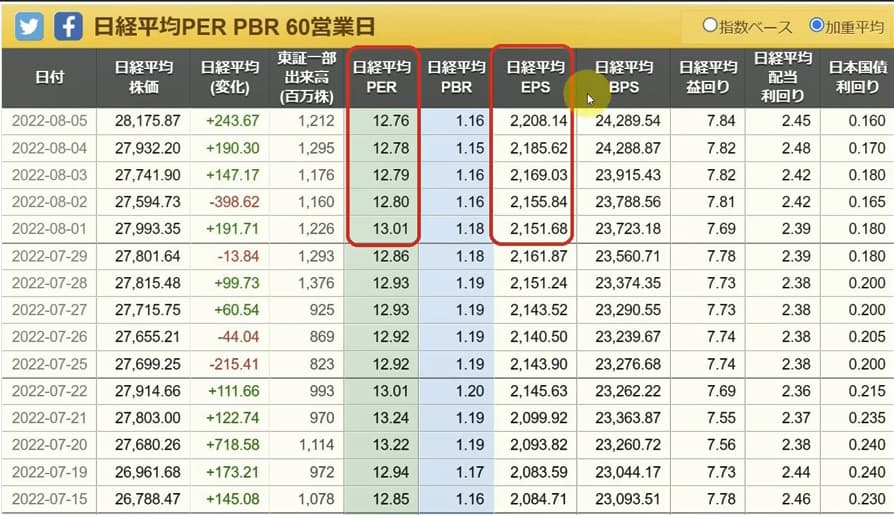 220807日経平均PER・EPS
