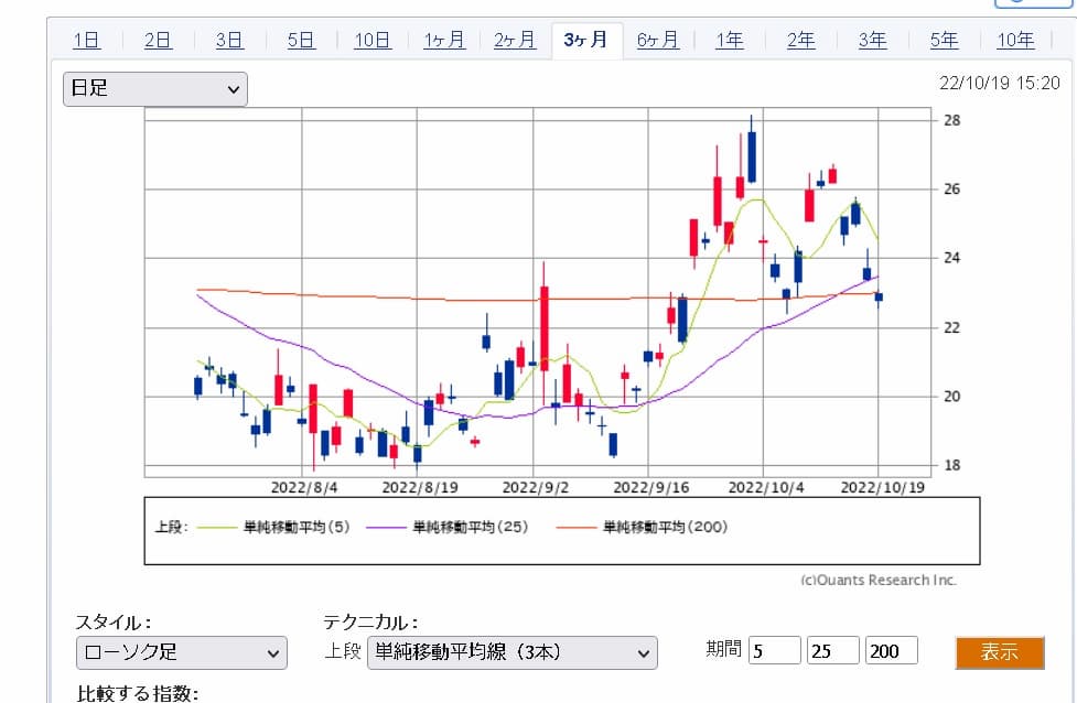 200日移動平均線も割り込んでおり、後はどこでボラティリティが決着するかいう段階にきています。