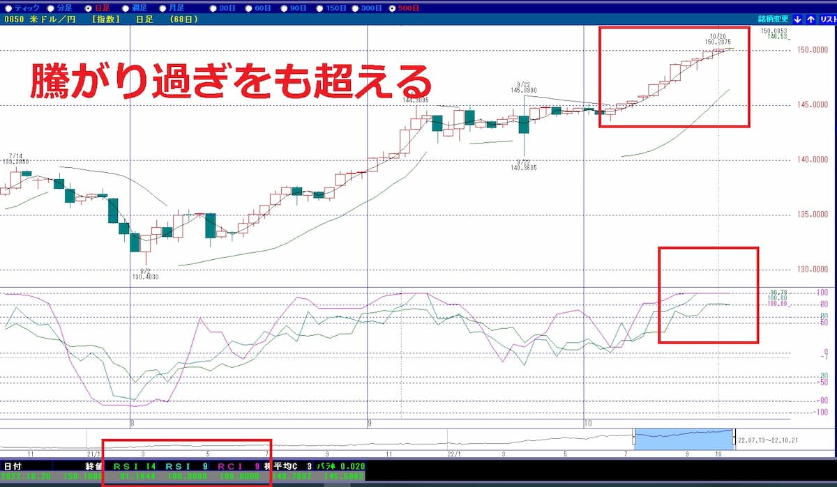RSIやRCIは90%以上となり、ほとんど張り付いている状況となっています。