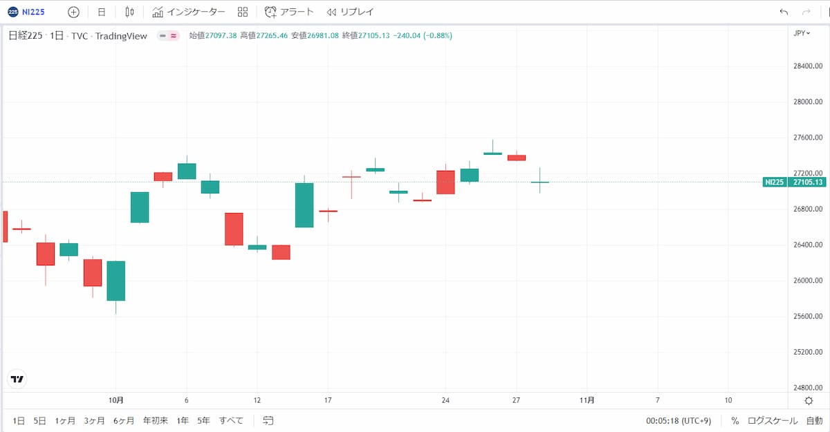 日経平均株価は27,000円~27,500円のレンジを