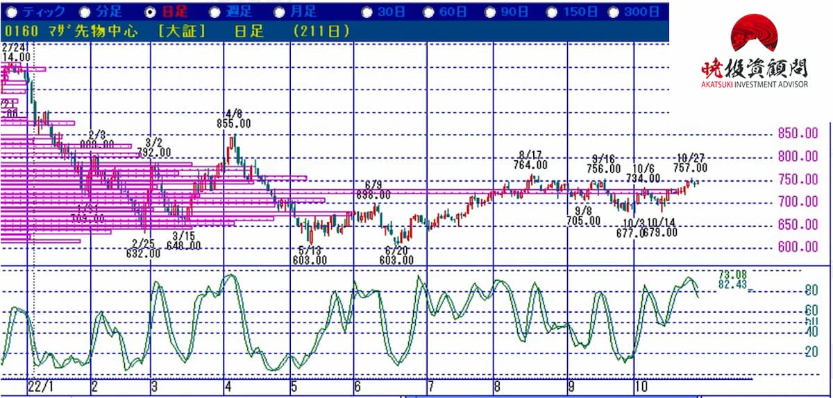 日経平均株価のチャートと少し景色が違います。