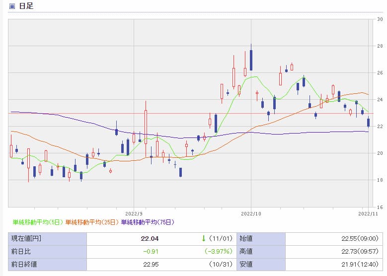 チャート上では25日移動平均線を上向き、75日移動平均線を抜きました。