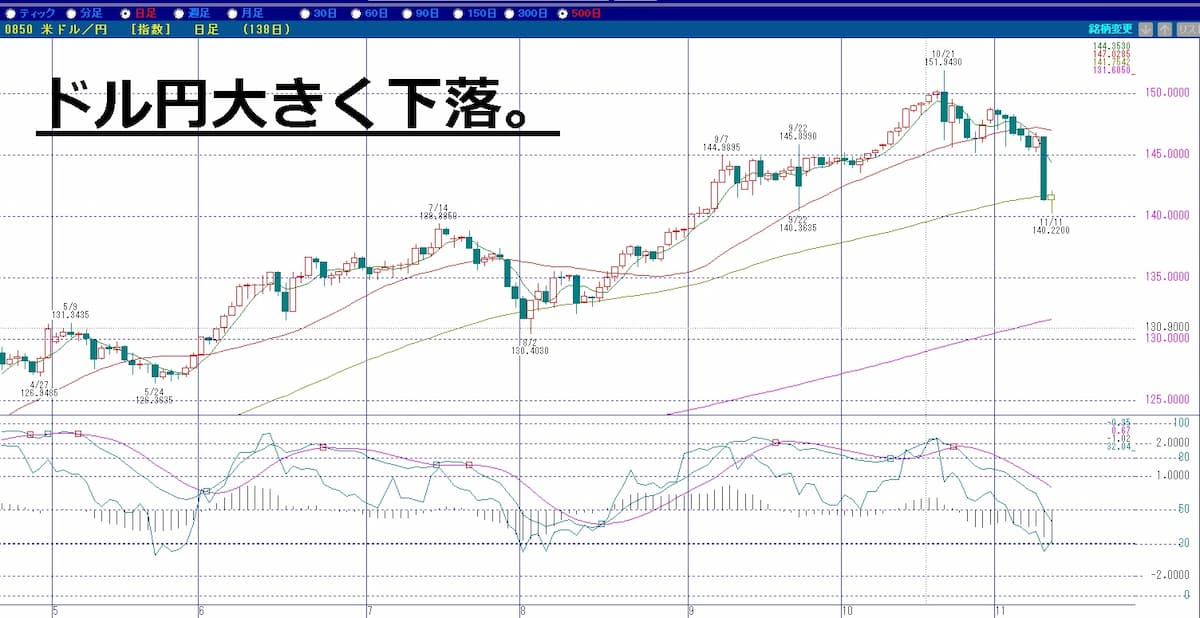 そしてドル円も同時に大きく下落となり、ついにドル円は140円台を割るところまで来ました。