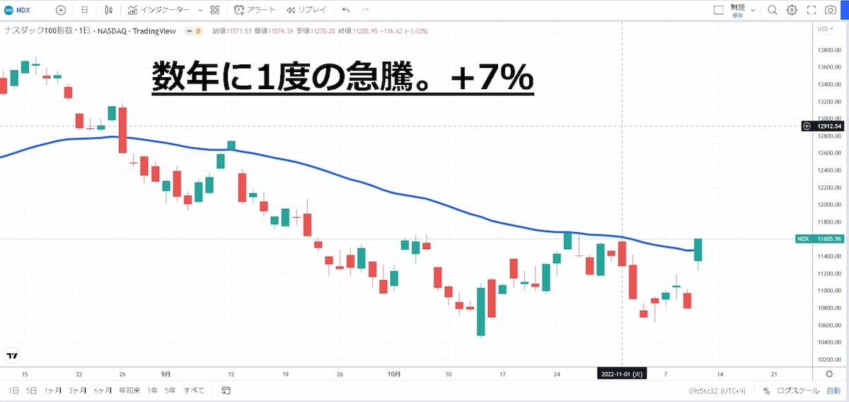 NASDAQは数年に1度の急騰により7%の上昇となりました。