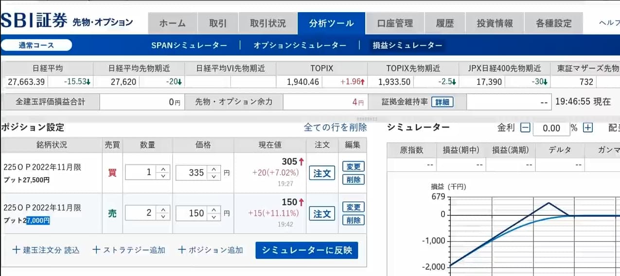 SBI証券を利用したオプション取引方法、オプションの損益シミュレーター、