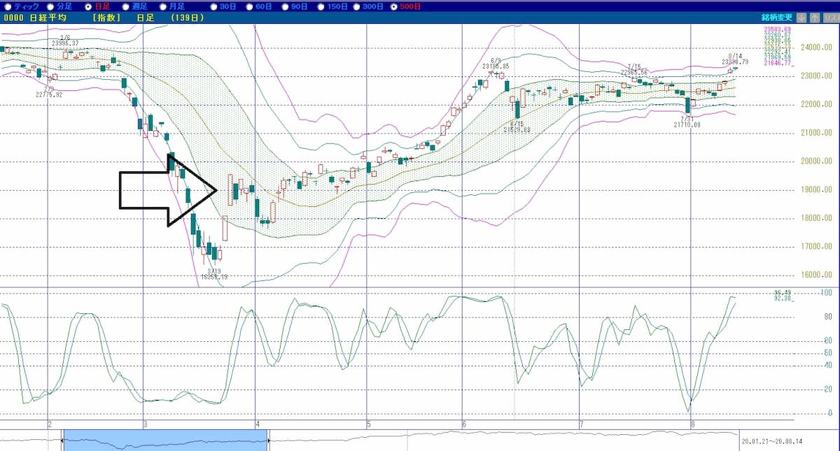 矢印部分はコロナショック時のものです。