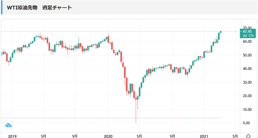 コロナ収束期待による経済正常化やOPECプラスの減産継続が価格上昇に繋がっているようです。