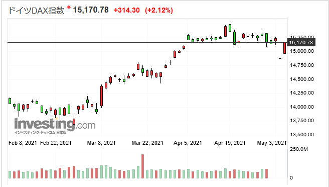 欧州ドイツのDAX指数は高値圏でもみ合いが続いていました。