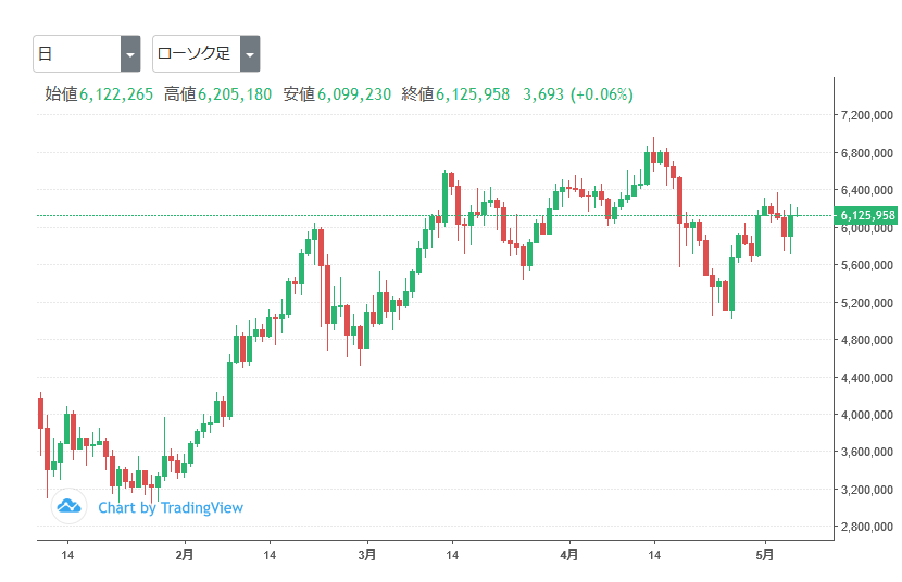 先日急落したビットコインは反発し現在1ビットコイン62000ドル付近。